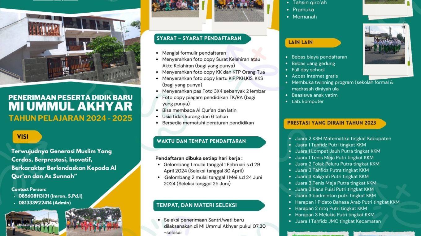 Penerimaan Peserta didik Baru MI Ummul Akhyar TP 2024/2025 Posted on Januari 13, 2024Januari 13, 2024 by ummulakhyar Continue reading