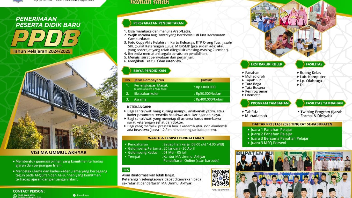 Penerimaan Peserta didik Baru MA Ummul Akhyar TP 2024/2025 Posted on Januari 9, 2024November 12, 2024 by ummulakhyar Link Pendaftaran Continue reading